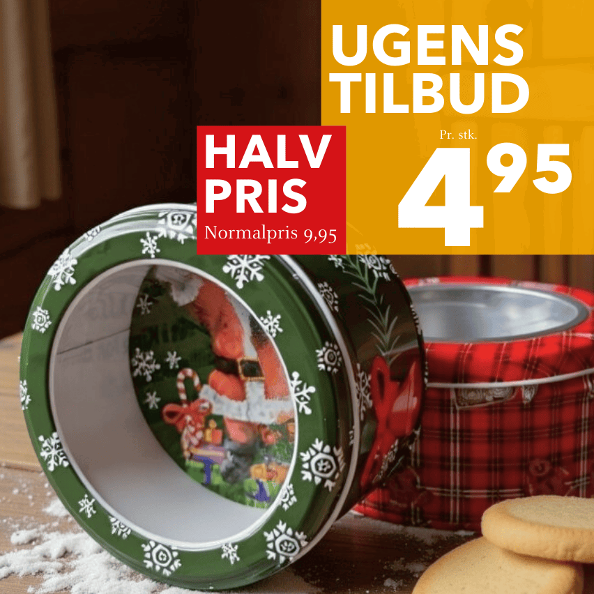 Kagedåse med vindue. Køb til halv pris i dit Billigblomst center. Så bliver der råd til at bage endnu flere lækre småkager.