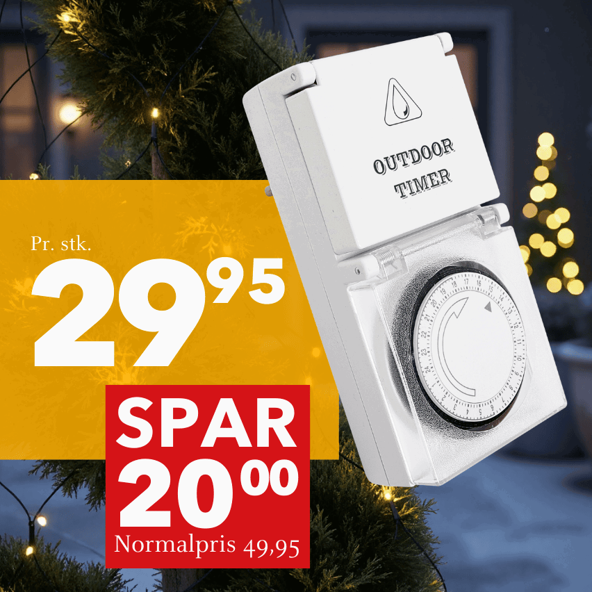 Timer til brug både ude og inde. Velegnet til bl.a. lyskæder. Tænd når det er mørkt og sluk i dagtimerne. Køb i dit Billigblomst center.