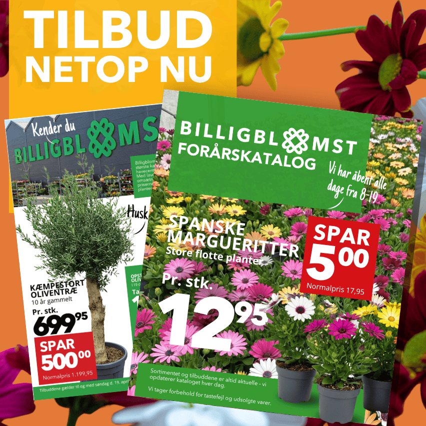 Gå ikke glip af de gode tilbud, spændende nyheder og de vanvittig gode Billigblomst priser, på sæsonaktuelle varer. Klik ind her og følg med