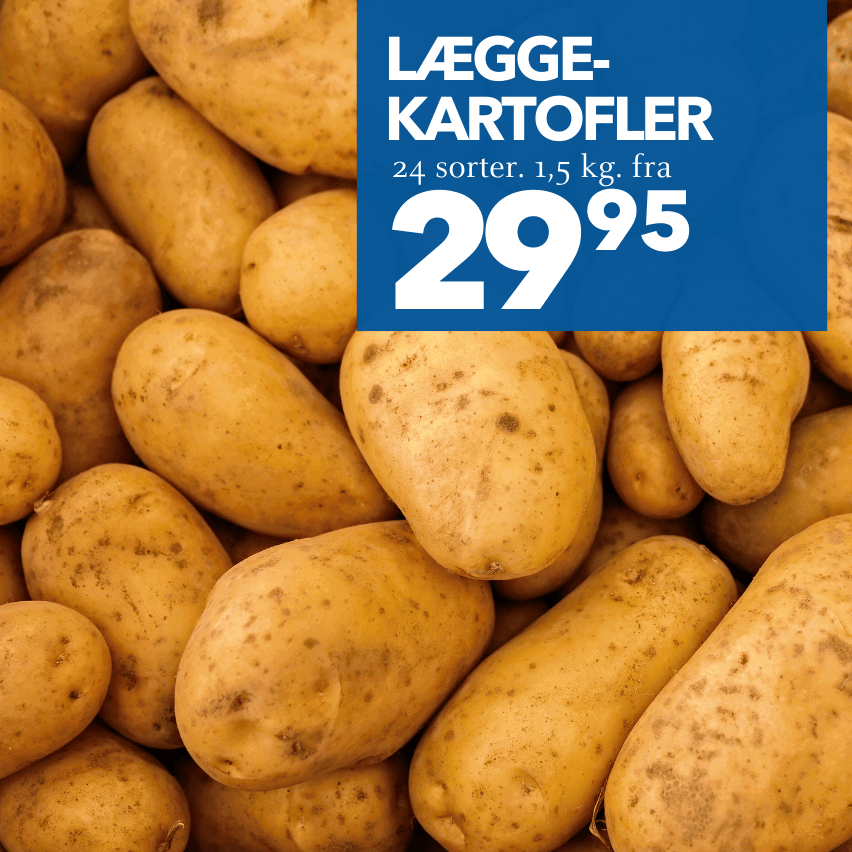 Sæsonen for forspiring af læggekartofler er startet. Jo tidligere du kommer i gang jo større udbytte og tidligere kan du høste. Vælg mellem 24 sorter.