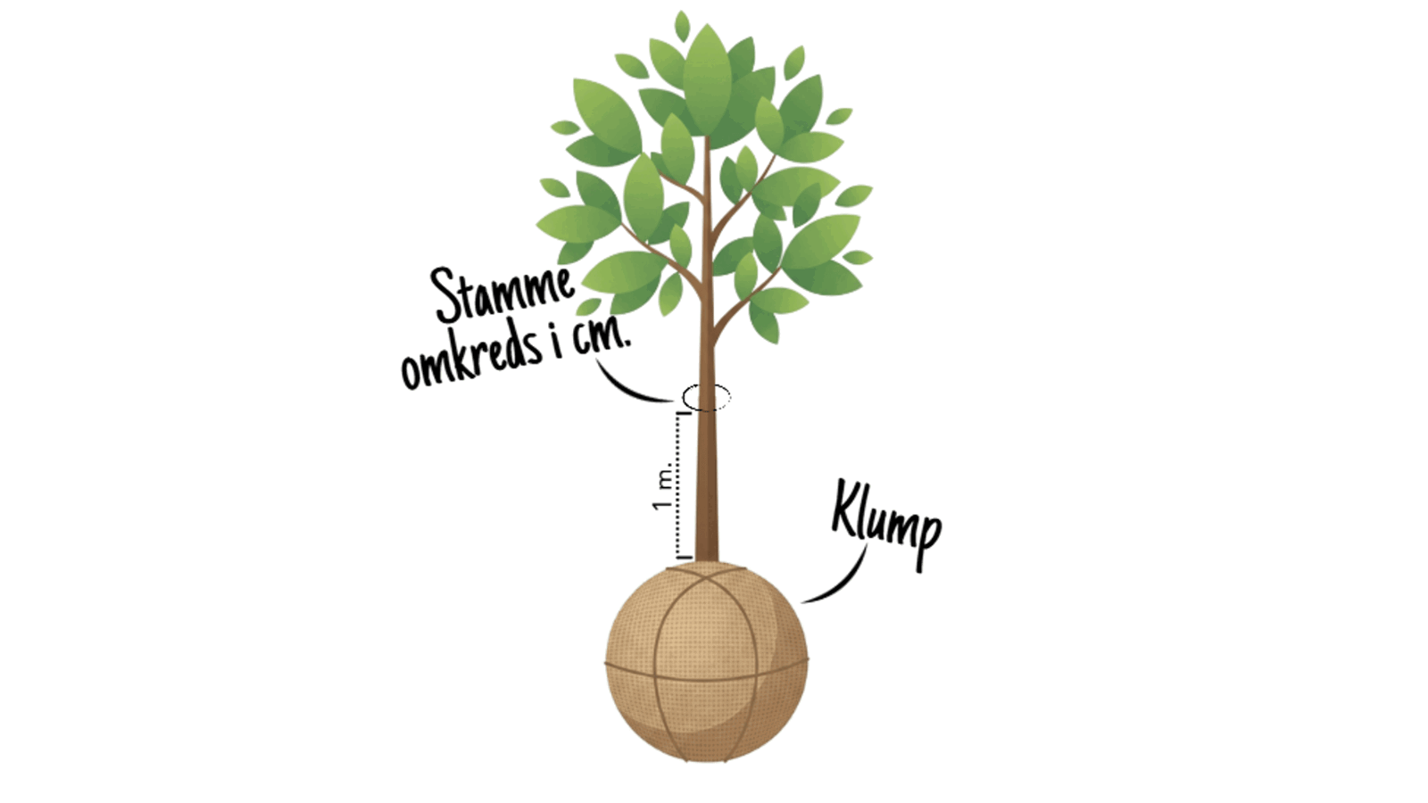 Plant træet ca. 2 cm dybere, end det har stået før. Rodklumpens overkant skal dækkes med ca. 2 cm jord for at undgå udtørring af klump og rødder. Der må ikke komme jord op omkring stammen.
